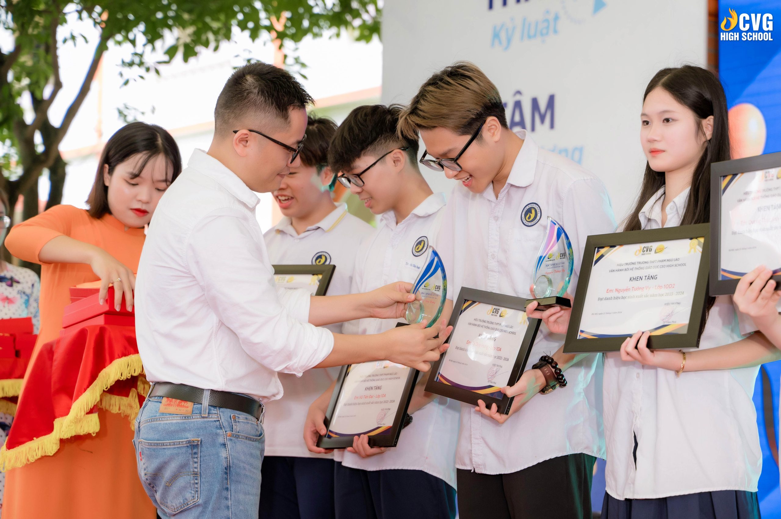 Lễ bế giảng là dịp để vinh danh các bạn học sinh có thành tích xuất sắc trong học tập và rèn luyện. Nhà trường đã trao tặng bằng khen, phần thưởng cho các em nhằm ghi nhận và khích lệ những nỗ lực, phấn đấu không ngừng nghỉ trong suốt năm học vừa qua. Đây là kết quả của những năm tháng miệt mài học tập, là bước khởi đầu cho một hành trình mới đầy hứa hẹn và thách thức.